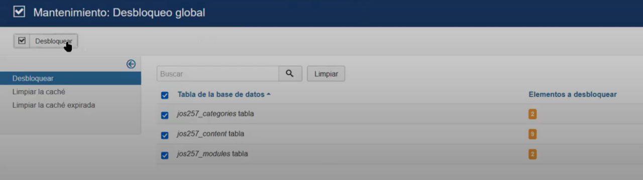 Para terminar vamos a desbloquear todos los artículos que estén bloqueados. Este proceso solo debe hacerse cuando sepamos que no hay otro usuario editando artículos actualmente.