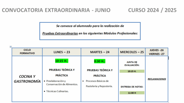 CONVOCATORIA EXTRAORDINARIA – JUNIO CURSO 2024 / 2025