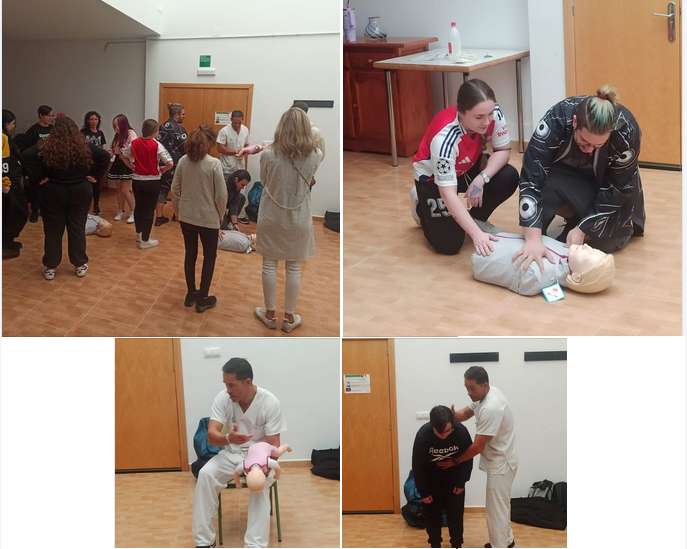 Como cada año desde el módulo de Itinerario Personal para la Empleabilidad, antiguo FOL, hemos tenido nuestro taller de primeros auxilios el 14 de octubre de la mano de nuestro enfermero de referencia y su compañera Ana. Nuestro alumnado ha practicado la reanimación cardiovascular y la maniobra de Heimlich como complemento a la teoría ya desarrollada en el aula junto a otros contenidos de primeros auxilios.