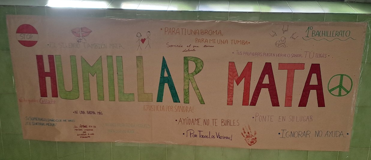 El mural recoge sus mejores intenciones para ayudar en el camino a las personas que sufren acoso.
